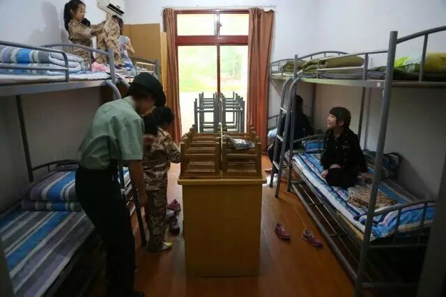 在宿舍里收拾内务,规定时间早起